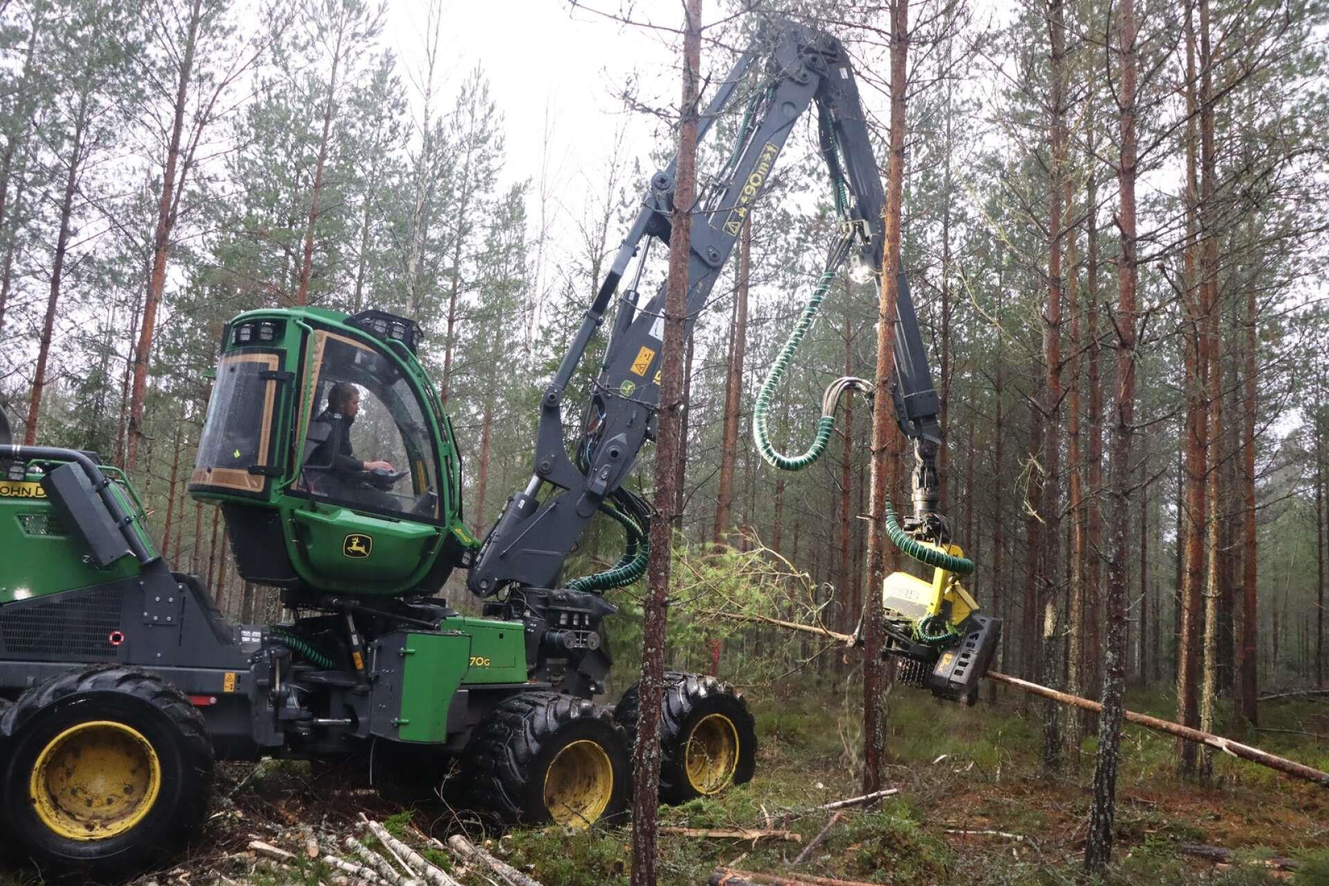 Gallring i drift med John Deere skördare och John Deere skotare under hela dagen.